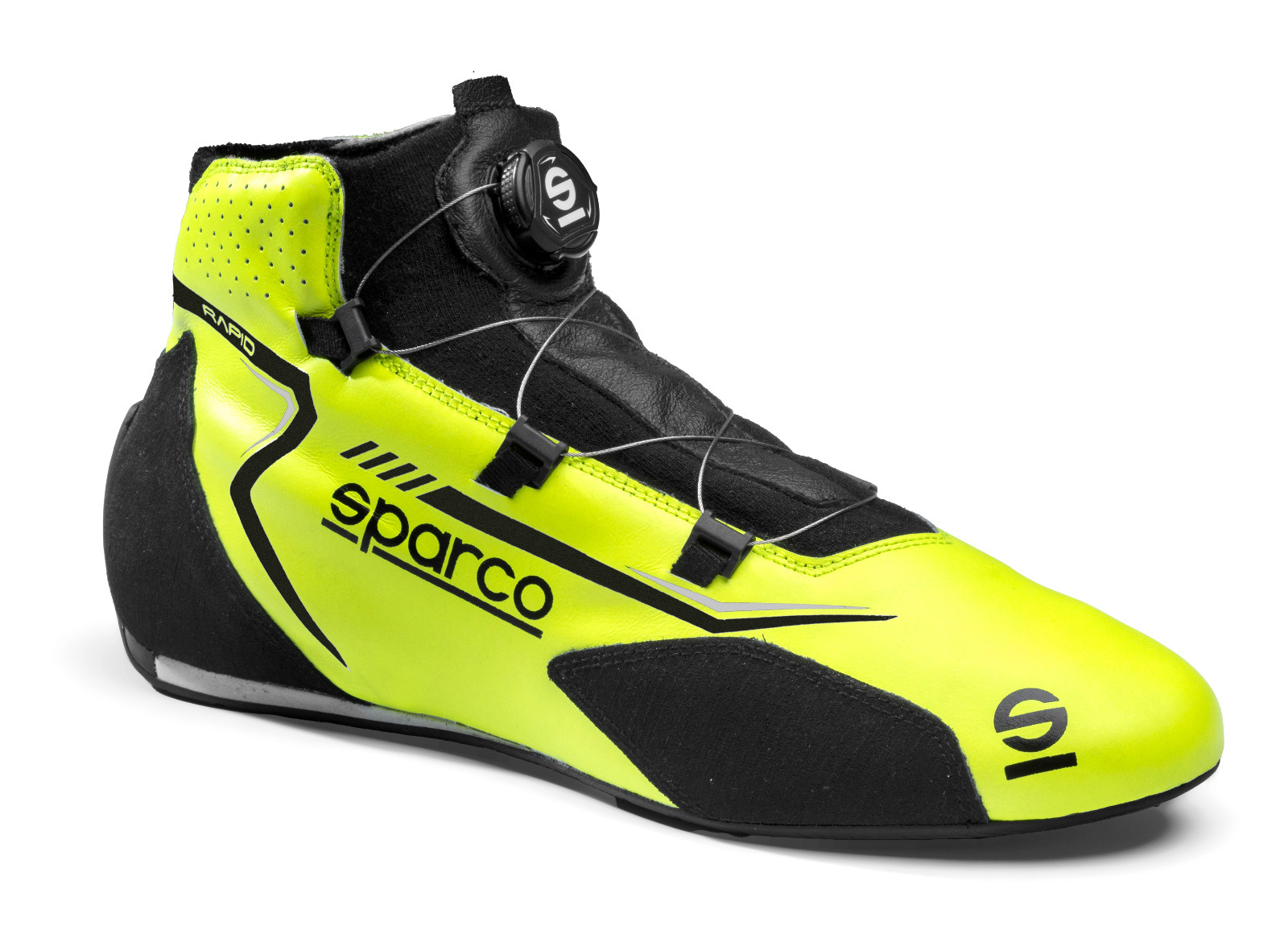 Závodní boty Sparco RAPID s otočným mechanismem zapínání, s homologací FIA, barva: žluto-černá, velikost: 43