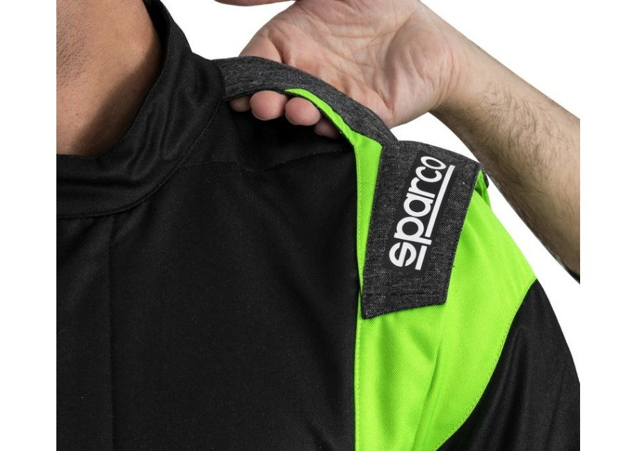 Řada Sparco Full Efficiency. 3 vrstvá konstrukce, plně regenerovaná podšívka a tkanina. Více než 70% recyklovaných materiálů. Výztužné vložky z recyklovaného materiálu. Strečový vnitřní stehenní panel. Homologace FIA 8856-2018; SFI 3,2A/5