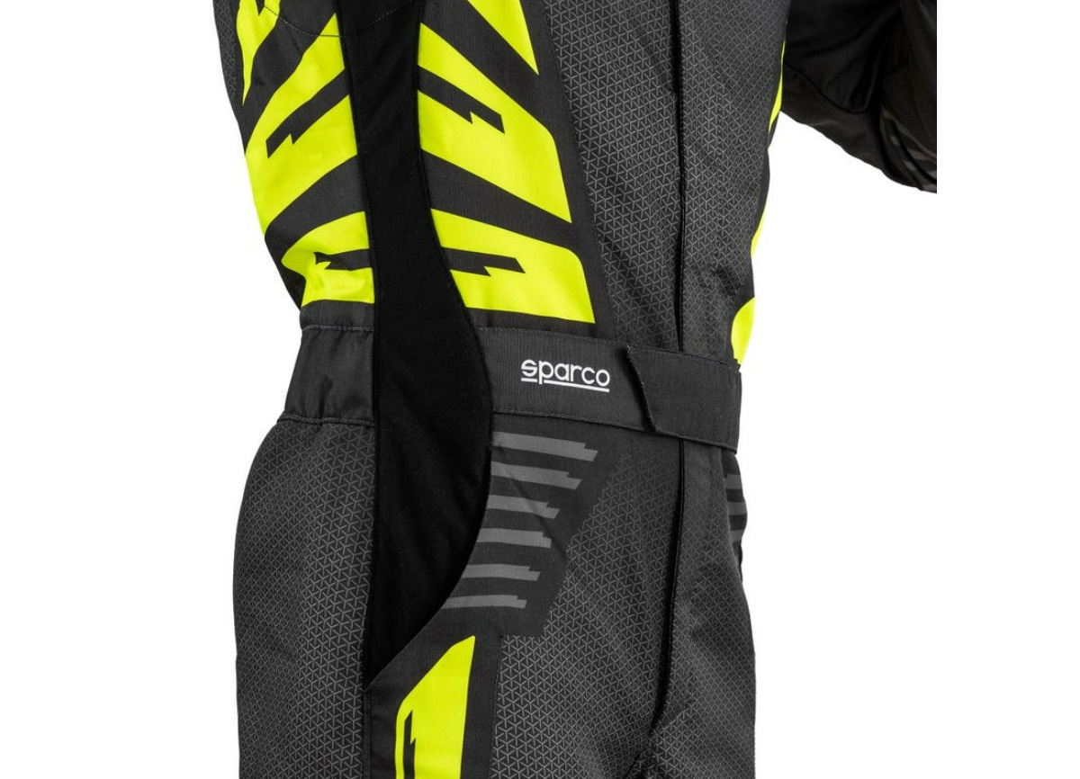 Nová závodní kombinéza Sparco INFINITY 5.0 umožňuje úplné přizpůsobení (dle směrnic Sparco) díky inovativní sublimační technologii. Nabízí lehkou dvouvrstvou konstrukci a ergonomické prvky pro maximální pohodlí a volnost pohybu.
