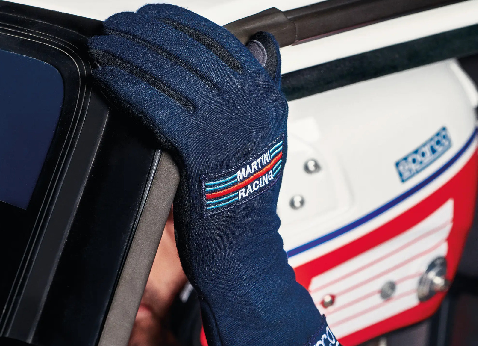 Závodní rukavice Sparco Land Martini Racing, homologace FIA a SFI, barva: modrá, velikost: 8