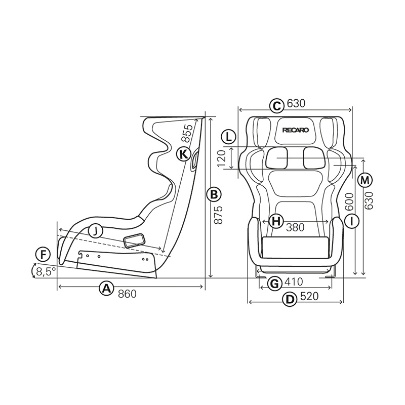 RECARO P 1300 GT je navrženo pro montáž do vozu pod úhlem sklonu 8,5°. Při instalaci je pak možné nastavení sklonu v rozsahu 3°.