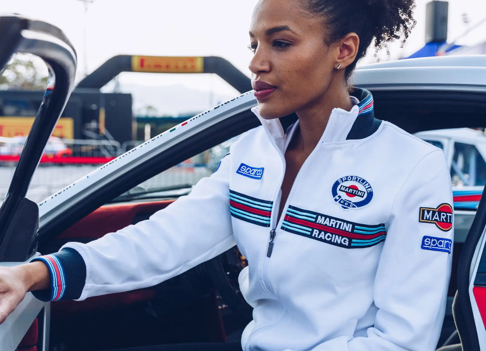 - Závodní DNA v každém detailu: Ikonické pruhy a logo Martini Racing na hrudi, rukávech, manžetách a pase, inspirované legendární kombinézou Sparco - Martini.