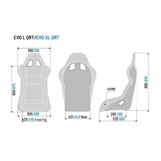 Sedadlo je dostupné ve dvou velikostech (EVO QRT a EVO II QRT). Porovnání rozměrů obou verzí naleznete mezi obrázky k sedadlu.