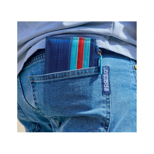 Peněženka na zip z pravé kůže v ikonických barvách Martini Racing, navržená pro styl a funkčnost.