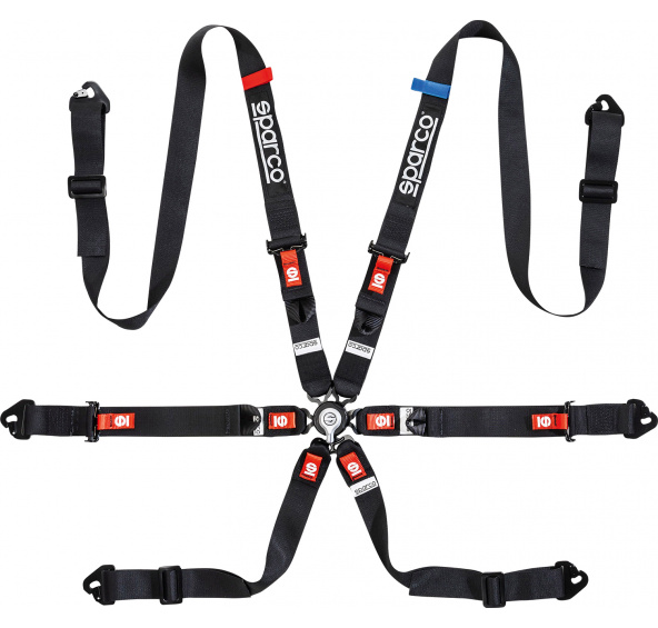 Popis produktu Sparco šestibodový bezpečnostní pás s homologací FIA kompatibilní s HANS, 2" popruhy, barva: černá