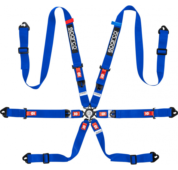 Popis produktu Sparco šestibodový bezpečnostní pás s homologací FIA kompatibilní s HANS, 2" popruhy, barva: modrá