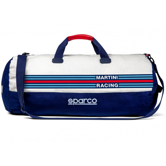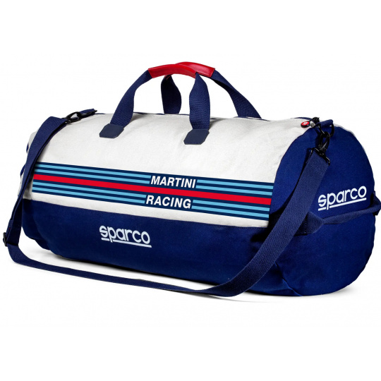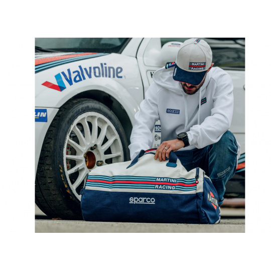 Měkká taška z bavlněného plátna vysoké hustoty s tištěnými detaily Martini Racing, ideální pro cestování nebo sportovní aktivity.