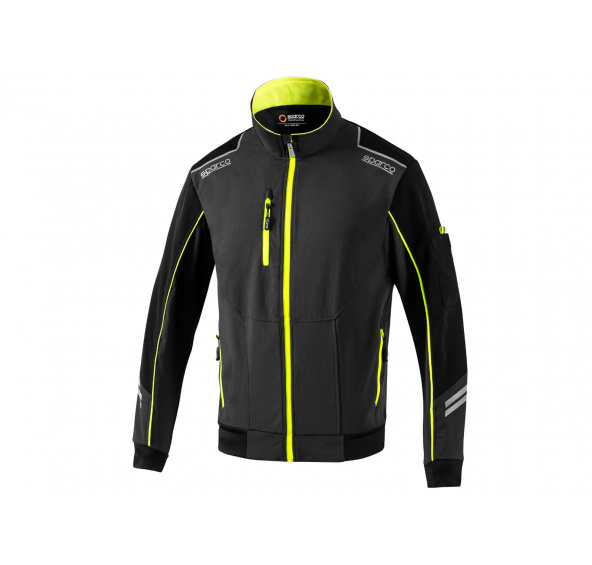 Popis produktu Sparco technická softshell lehká bunda Austin, barva: šedo-žlutá, velikost: XXXL