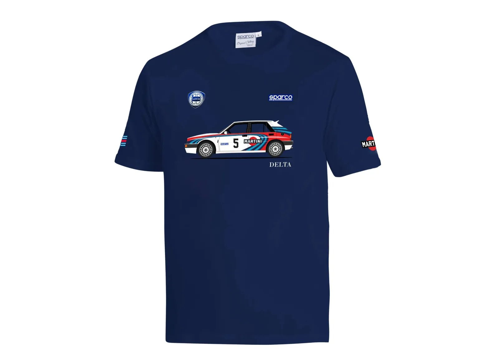 - Digitální potisk Lancia Delta Integrale: Na hrudi se nachází detailní motiv legendárního vozu skupiny A v barvách Martini Racing. Digitální technologie zajišťuje vysoké rozlišení, ostré detaily a vysokou odolnost motivu.