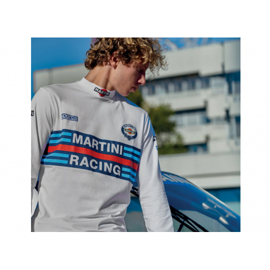Tričko s dlouhým rukávem a límcem, originální replika ikonické kombinézy Sparco Martini Racing