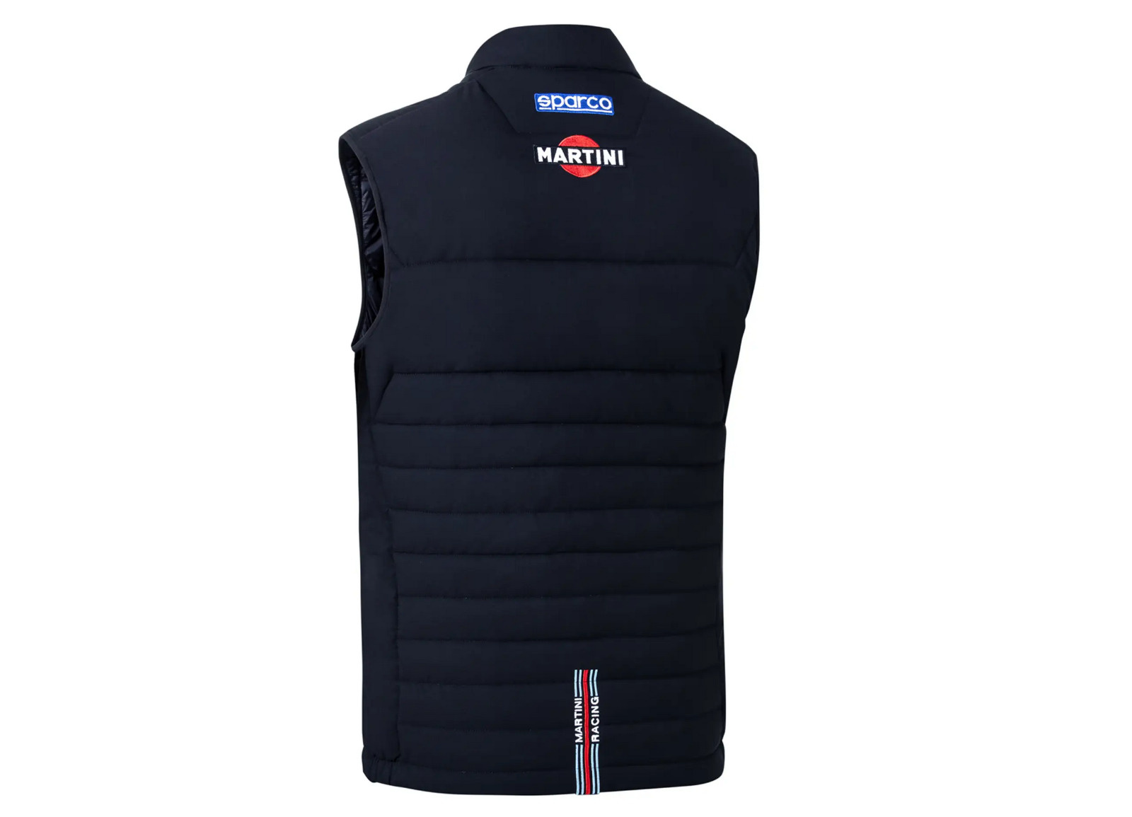 Vesta v barvě MARTINI RACING s vyšitými logy, vyrobená z technické tkaniny, která kombinuje lehkost, odolnost a sportovní styl.