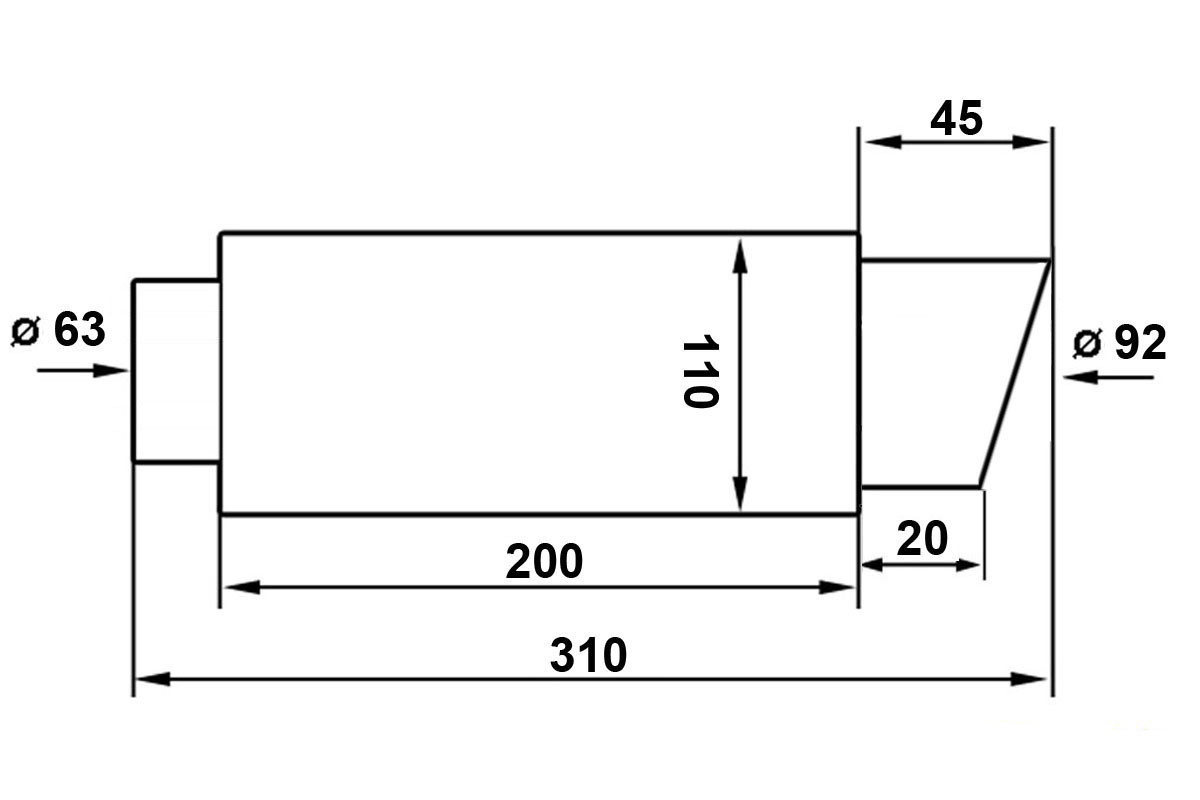 Sportovní nerezový tlumič výfuku Slim s koncovkou průměr 92mm