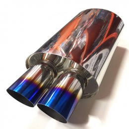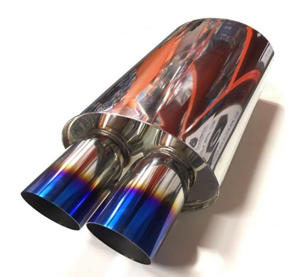 Sportovní nerezový výfuk (tlumič) univerzální - koncovka 2x 76mm zkosená, TitanLook
