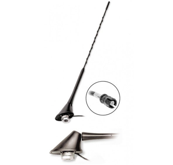 Střešní anténa do zadní části střechy se zesilovačem – fantomové napájení (+12V napájení po středovém vodiči anténního svodu).