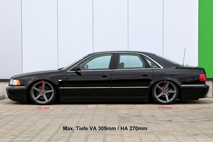 TA Technix kompletní vzduchový podvozek - Airride pro vůz Audi A8/S8 (D2, 95-02) je připravený s veškerým potřebným ovládáním a instalačním materiálem k montáži do vašeho vozu a navíc s TUV homologací.