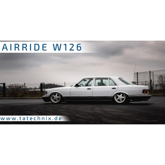 TA Technix kompletní vzduchový podvozek - Airride pro vůz Mercedes Benz S (W126/C126, 79-91) kromě modelů s nivo regulací je připravený s veškerým potřebným ovládáním a instalačním materiálem k montáži do vašeho vozu a navíc s TUV homologací.
