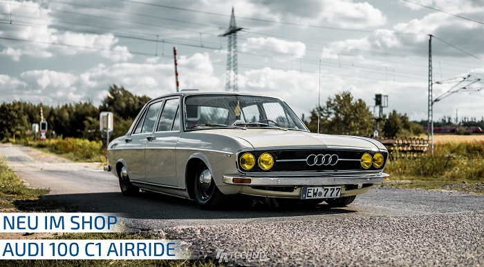 TA Technix kompletní vzduchový podvozek - Airride pro vůz Audi 100 (typ C1, 1970 - 1976) je připravený s ovládacím managementem a instalačním materiálem k montáži do vašeho vozu a navíc s TUV homologací.
