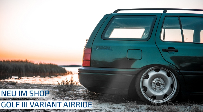 TA Technix kompletní vzduchový podvozek - Airride pro vůz VW Golf III Variant (typ 1H, 93-99) kromě Syncro je připravený s ovládacím managementem a instalačním materiálem k montáži do vašeho vozu a navíc s TUV homologací.
