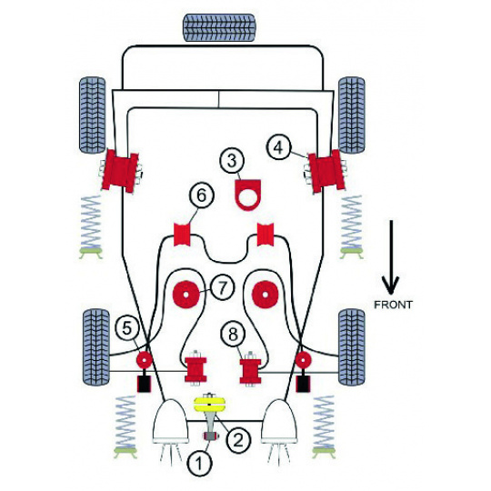 Pozice silentbloků na podvozku je zobrazena na přiloženém schématu - pozice č. 1.