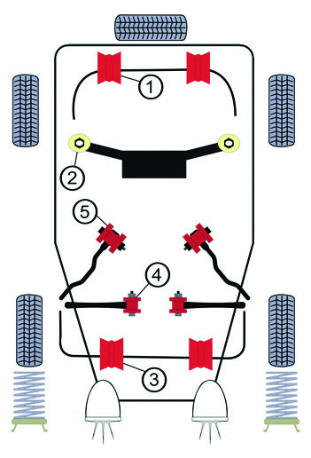 Pozice silentbloků na podvozku je zobrazena na přiloženém schématu - pozice č. 4.