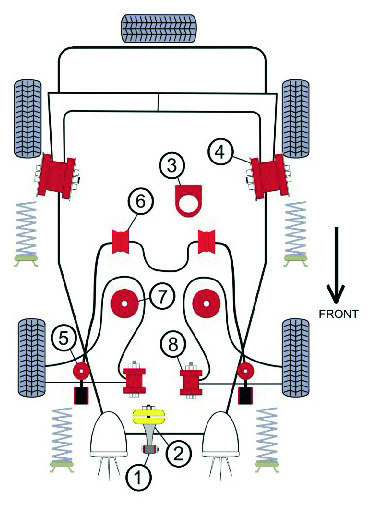 Pozice silentbloků na podvozku je zobrazena na přiloženém schématu - pozice č. 6.