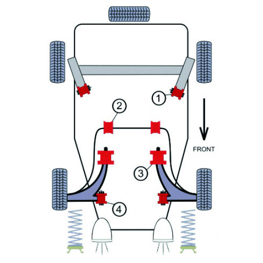 Pozice silentbloků na podvozku je zobrazena na přiloženém schématu - pozice č. 2.