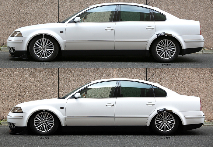 Rozsah snížení (vzdálenost lemu blatníku ke středu kola) vpředu / vzadu: