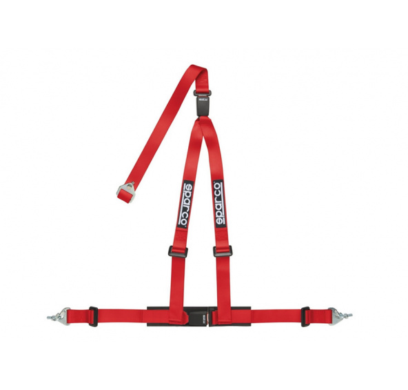 Popis produktu Tříbodový bezpečnostní pás Sparco s homologací ECE, odpojitelný, barva: červená
