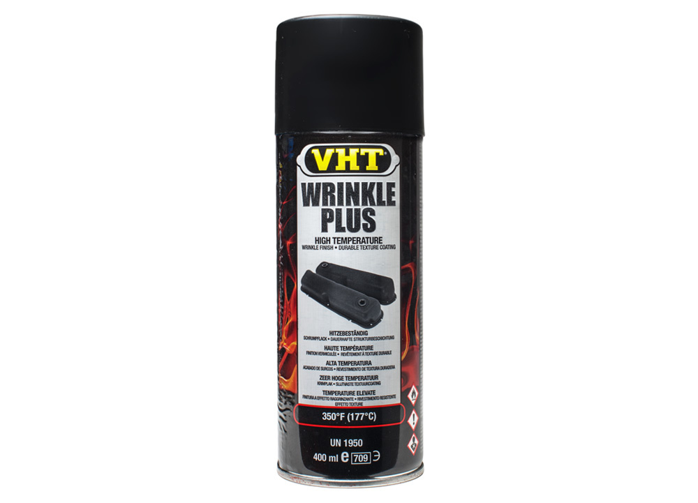 Povrch lakovaný pomocí barvy VHT Wrinkle Plus™ odolává blednutí, mastnotě, chemikáliím a povětrnostním vlivům. Barva je také extrémně odolná proti korozi, odlupování nebo praskání.