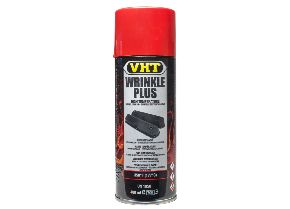 Povrch lakovaný pomocí barvy VHT Wrinkle Plus™ odolává blednutí, mastnotě, chemikáliím a povětrnostním vlivům. Barva je také extrémně odolná proti korozi, odlupování nebo praskání.