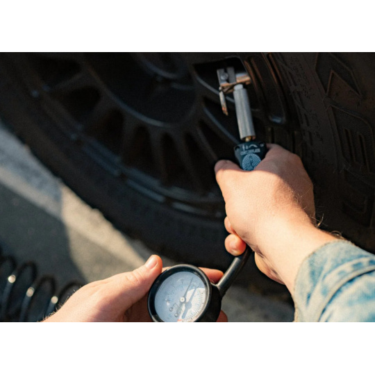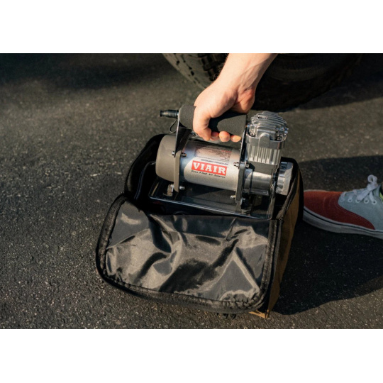 Kompresor VIAIR 300P je kompaktní, ale výkonný přenosný kompresor, schopný nafukování i offroad pneumatik o průměru až 33". Připojení ke zdroji energie pomocí kvalitních svorek. Tlak v pneumatikách lze sledovat na analogovém manometru, který je součástí dodávky.