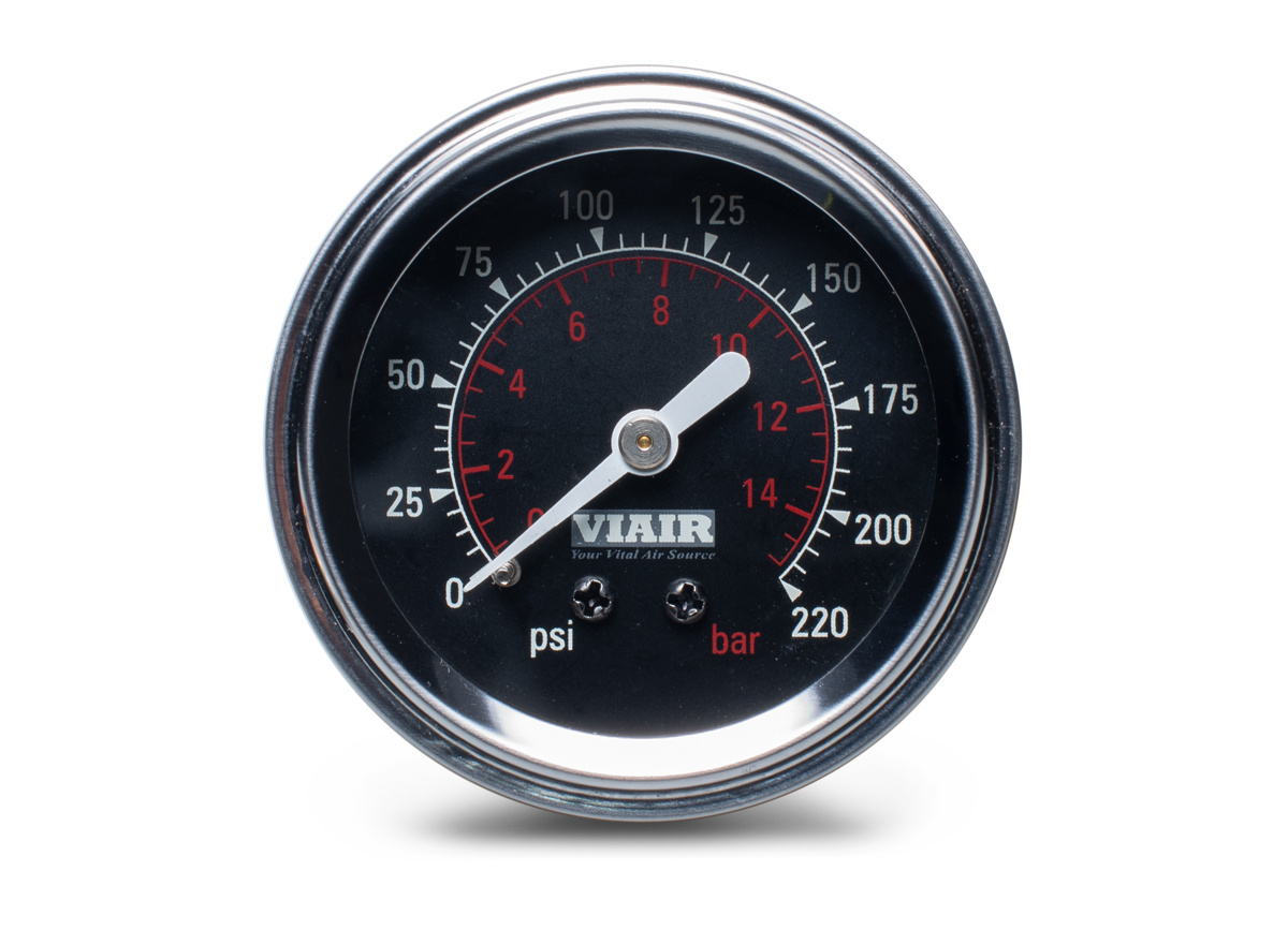 VIAIR ukazatel tlaku 2" jednoručičkový, podsvícený, do 15 bar / 220 PSI, barva: černá