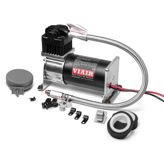 Vzduchový kompresor VIAIR 280C určený pro plnění menších tlakových nádob do objemu 9,5 l (2,5 gallonu). Pracovní cyklus 30% při tlaku 6,895bar (100 PSI) umožňuje opakované spuštění kompresoru. Maximální pracovní tlak kompresoru je 10,342 bar (150 PSI). Specifikace: