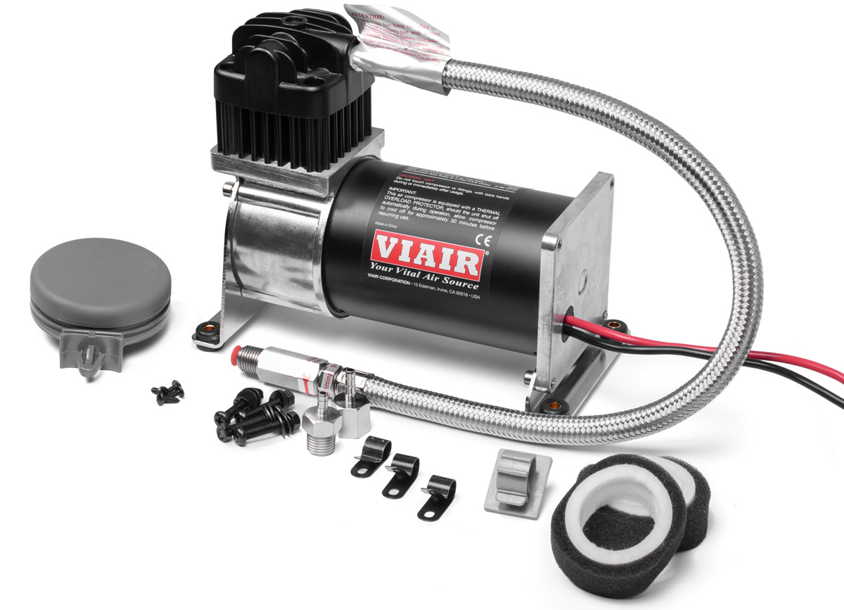 Vzduchový kompresor VIAIR 280C určený pro plnění menších tlakových nádob do objemu 9,5 l (2,5 gallonu). Pracovní cyklus 30% při tlaku 6,895bar (100 PSI) umožňuje opakované spuštění kompresoru. Maximální pracovní tlak kompresoru je 10,342 bar (150 PSI). Specifikace: