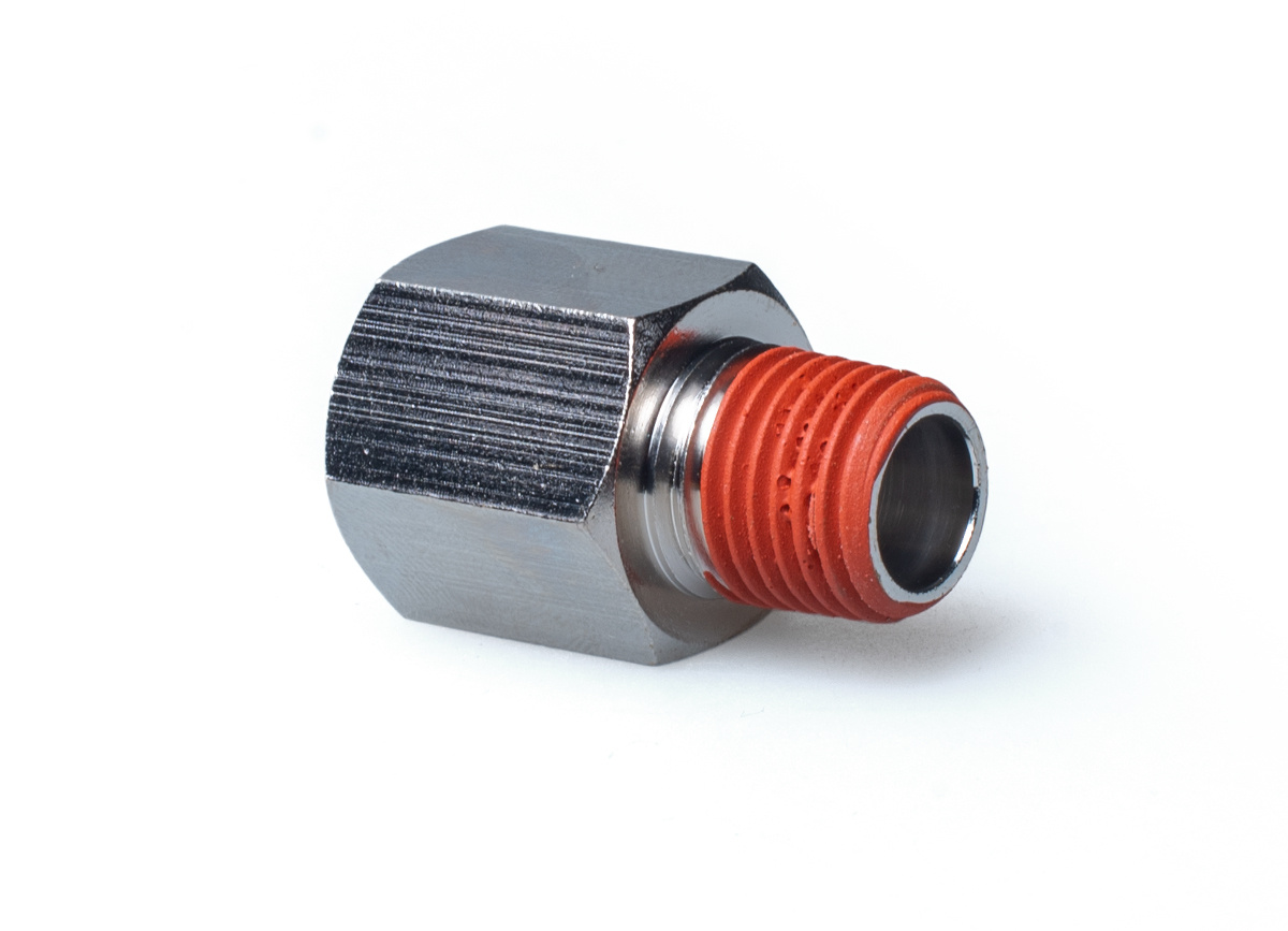 Závitová redukce VIAIR. Vhodné například pro připojení kompresoru se zakončením hadice 3/8" (např. VIAIR 480C) do nádoby s 1/4" portem. samice 3/8" NPT - samec 1/4" NPT.