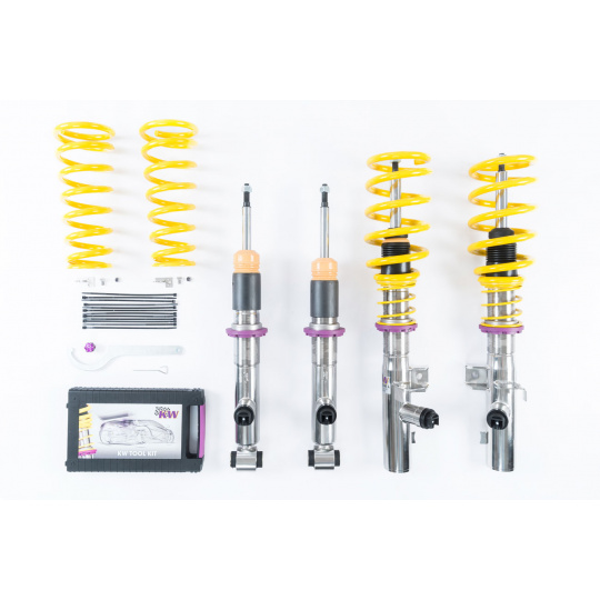 Aby byla zaručena maximální životnost podvozku KW Automotive bez ohledu na podmínky, ve kterých je používán, jsou obaly tlumičů konstrukce McPherson vyráběny výhradně z nerezové oceli. Ve spojení s antikorozní úpravou pružin a nerezovou maticí pro nastavení výšky obalenou do polyamidového kompozitu si tak podvozek KW Automotive udržuje perfektní vzhled a bezproblémové přenastavení výšky kdykoliv je to třeba.