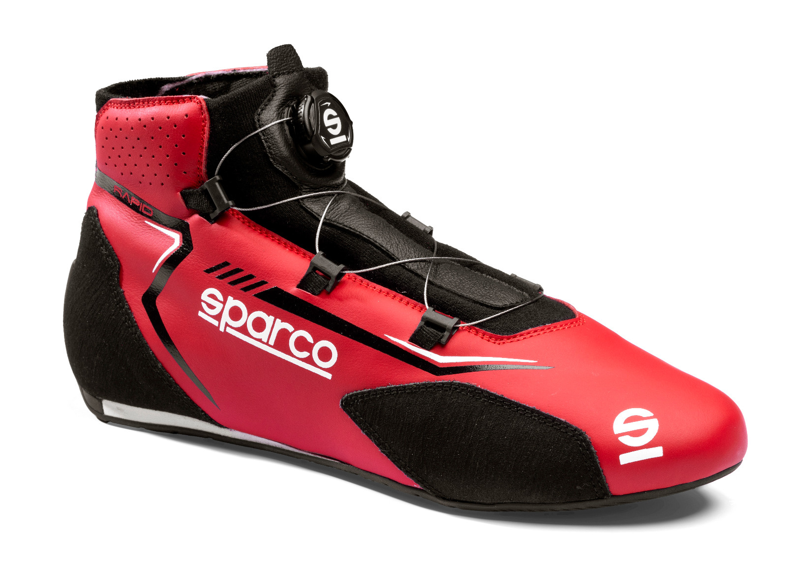 Závodní boty Sparco RAPID s otočným mechanismem zapínání, s homologací FIA, barva: červeno-černá, velikost: 43