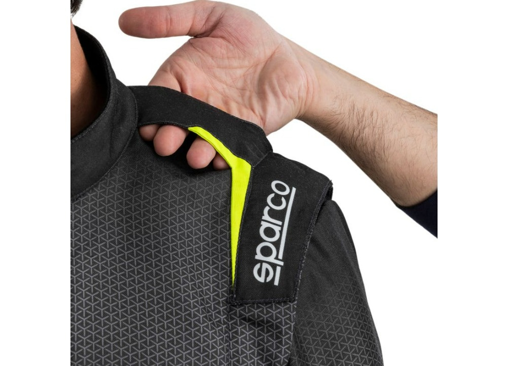 Nová závodní kombinéza Sparco INFINITY 5.0 umožňuje úplné přizpůsobení (dle směrnic Sparco) díky inovativní sublimační technologii. Nabízí lehkou dvouvrstvou konstrukci a ergonomické prvky pro maximální pohodlí a volnost pohybu.