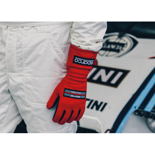 Závodní rukavice Sparco Land Martini Racing, homologace FIA a SFI, barva: červená, velikost: 9