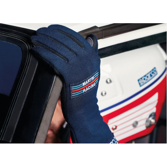 Závodní rukavice Sparco Land Martini Racing, homologace FIA a SFI, barva: modrá, velikost: 13